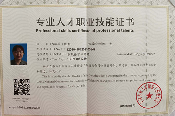 陈晶中级语言训练师